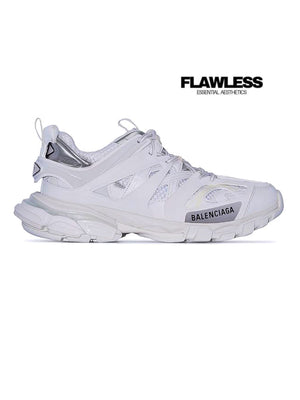 ▪︎The signature style of the season, these White, orange and black Track sneakers feature a round toe, a lace-up front fastening, a logo patch at the tongue, a printed logo, a pull tab at the rear, branded heel counter and a chunky rubber sole.