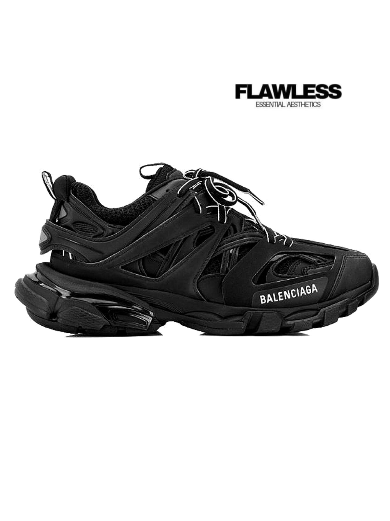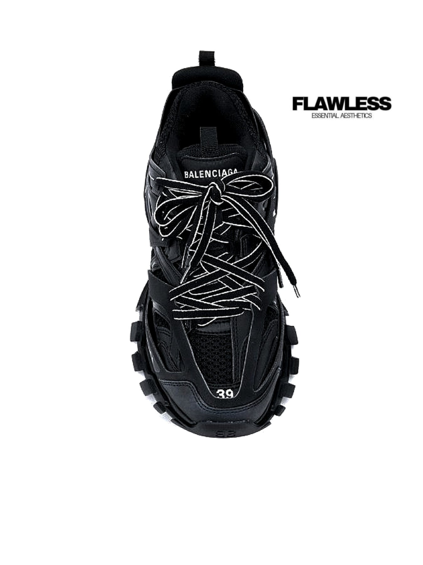 ▪︎The signature style of the season, these black Track sneakers feature a round toe, a lace-up front fastening, a logo patch at the tongue, a printed logo, a pull tab at the rear, branded heel counter and a chunky rubber sole.