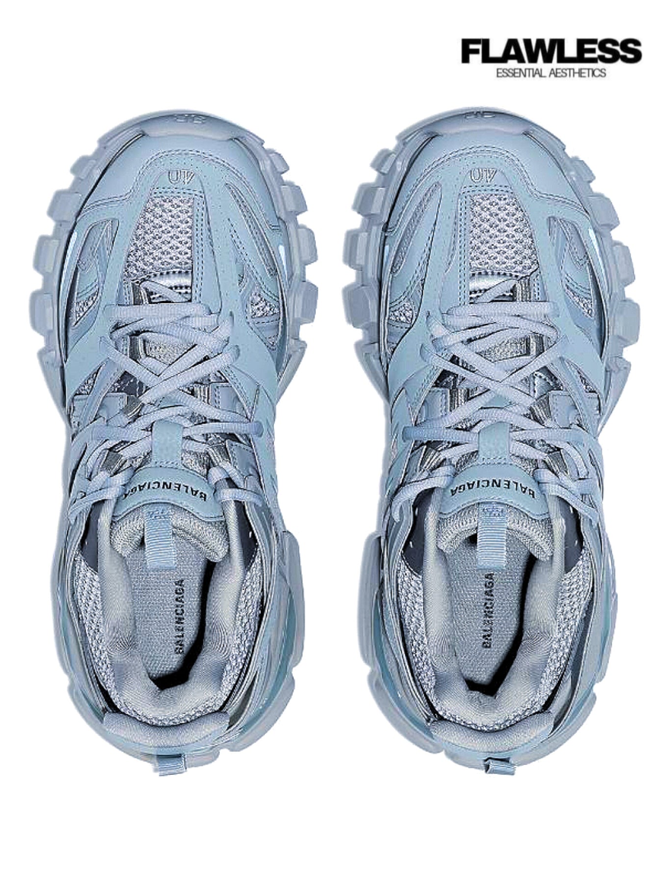 ▪︎The signature style of the season, these medium grey Track sneakers feature a round toe, a lace-up front fastening, a logo patch at the tongue, a printed logo, a pull tab at the rear, branded heel counter and a chunky rubber sole.