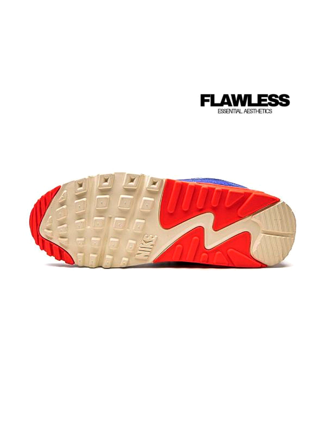 ▪︎The visible Air unit defines the Nike Air Max 90 sneakers, adding both a contemporary look and cushioned support. Presented in a Hyper Royal and Coconut Milk colourway, this pair offers an eye-catching design.