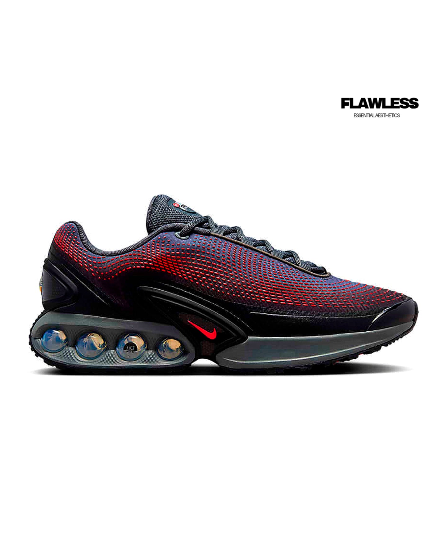 ▪︎Say hello to the next generation of Air technology. The Air Max Dn features our Dynamic Air unit system of dual-pressure tubes, creating a reactive sensation with every step. This results in a futuristic design that's comfortable enough to wear from day to night. Go ahead—Feel The Unreal.