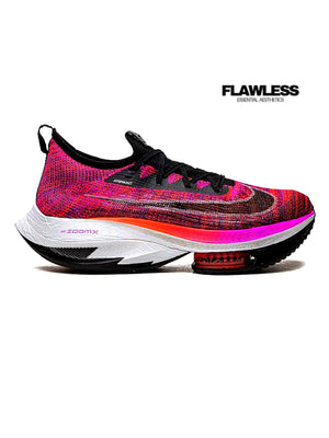 ▪︎Designed with a multicolour Atomknit, these Air Zoom Alphafly Next% sneakers from Nike are the perfect eye-catching look. Placed atop a ridged and jagged rubber sole, the low-top pair are unique and quirky.
