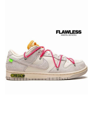 ▪︎Virgil Abloh and Nike have teamed up once again for a new iteration of the Dunk Low. In a grey and white leather construction and equipped with a Swoosh on the sides, the pair comes with overlaid rope lacing system from past Off-White™ x Nike Dunk Low collaborations. Also, to finish the look, there's signature text on the lateral quarter and a black Nike logo print on the heel.